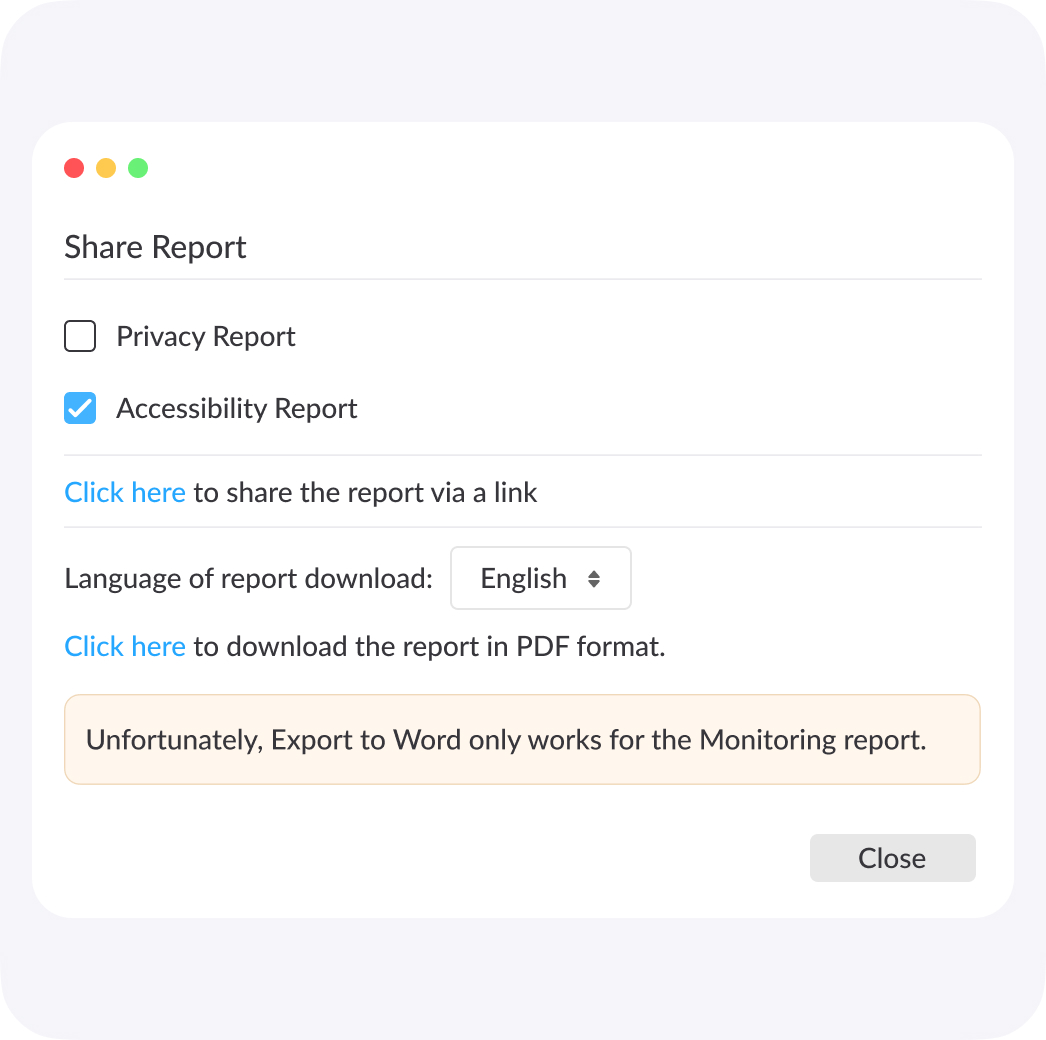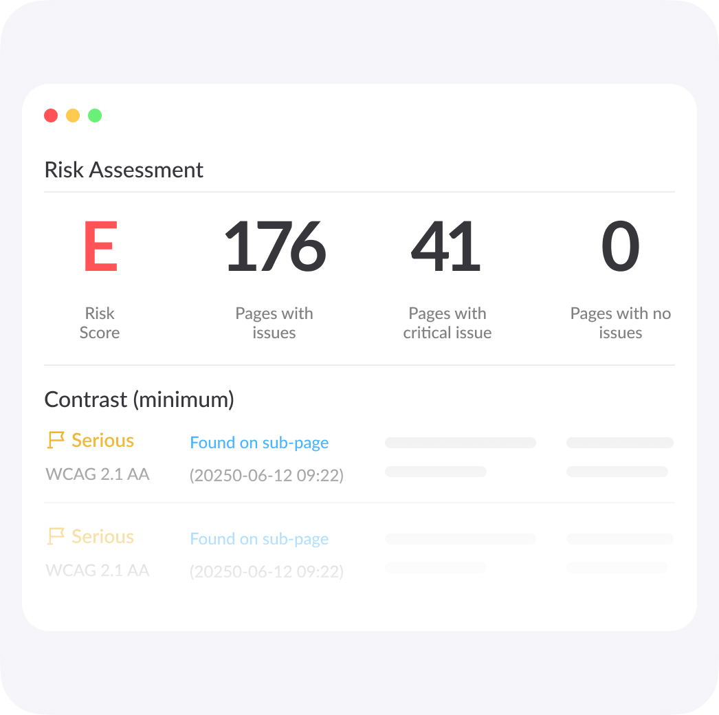 Website updates, new content, or plugin changes can create new barriers at any time. By the time you or your clients notice, the damage has already been done: complaints from users, warnings, or damage to your image. Without continuous monitoring, you are only checking yesterday’s status.